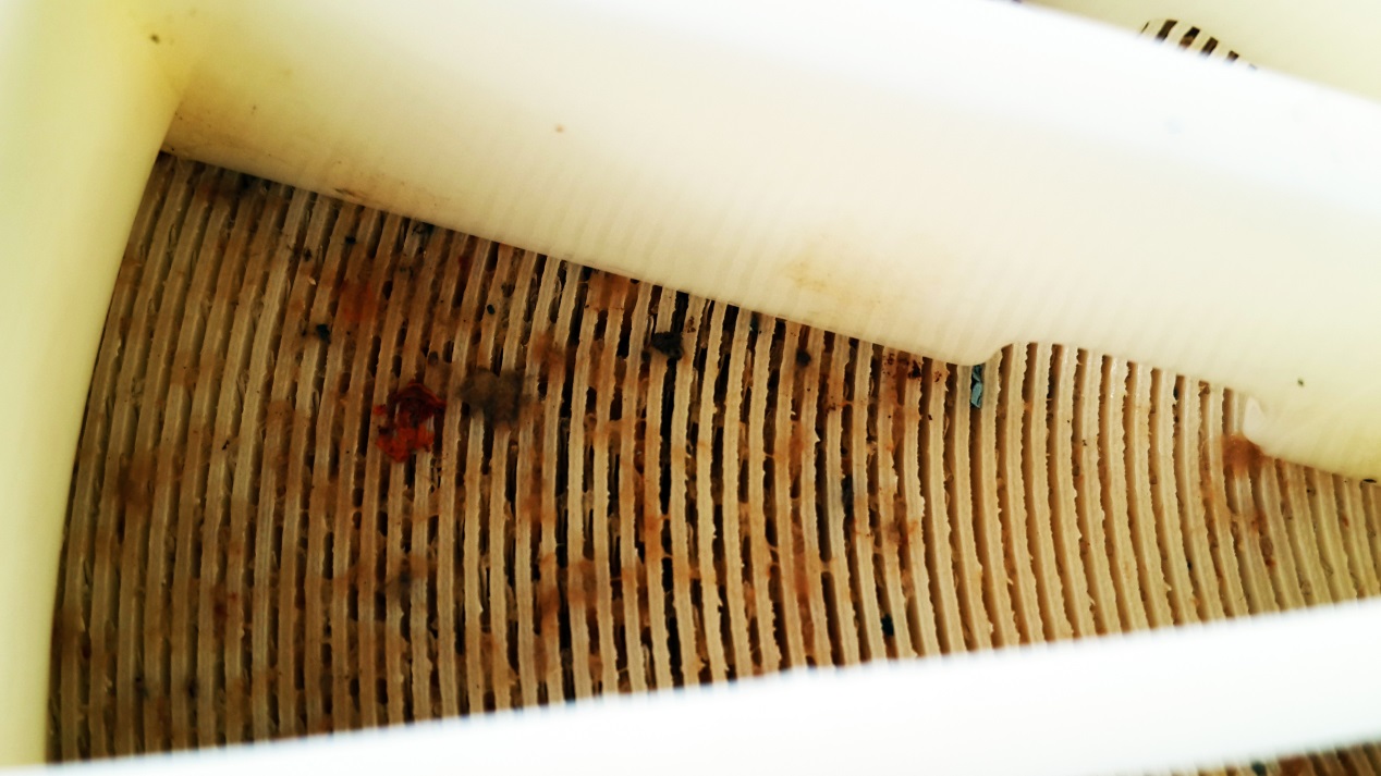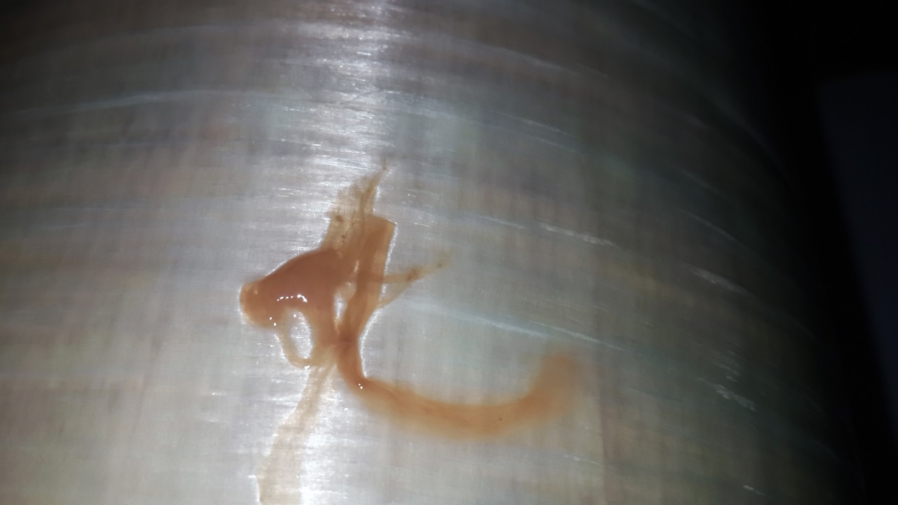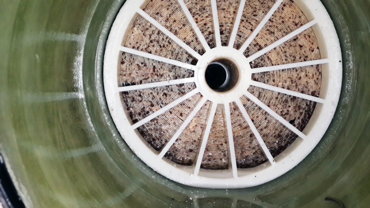 就本項目而言,在反滲透膜拆卸過程中未能在滲透二段出口部分膜元件中發(fā)現(xiàn)明顯的白色粉末狀的物質(zhì);一段進口段部分膜元件有明顯的異味(腥臭味),膜殼內(nèi)壁及反滲透膜上有黏液或鼻涕狀物質(zhì);其次在一二段膜的進水端發(fā)現(xiàn)大量的細砂、焊渣、等較大的固體顆粒物,另外明顯感覺到一段進水端的第一支膜重量明顯超重。